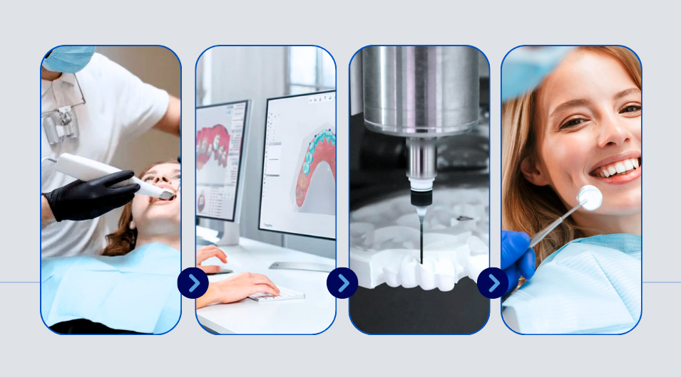 Ideal para clínicas menores que desejam dar os primeiros passos no digital. Nesse modelo, o escaneamento é feito internamente e os arquivos são enviados a um laboratório parceiro com estrutura para trabalhar com o fluxo digital odontológico. É uma forma acessível de começar, sem a necessidade de investimento em equipamentos de produção.