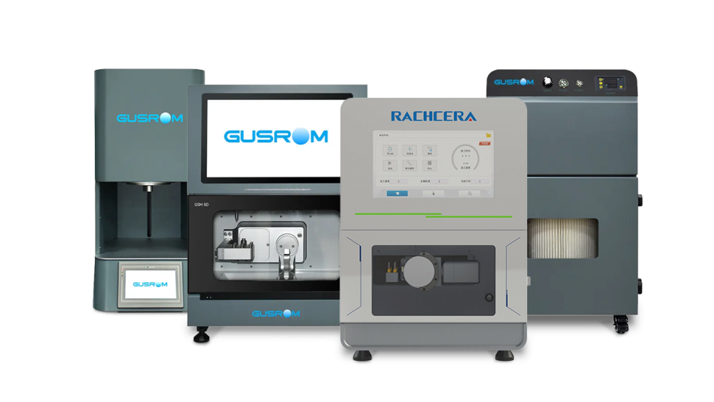 • Alta produtividade: spindle de 60.000 rpm para fresamento rápido e estável de zircônia, PMMA, PEEK, cera e compósitos.